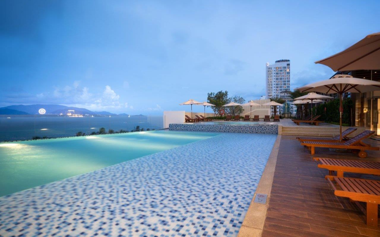 Nằm liền kề hồ bơi vô cực tại tầng 6, Infinity Pool Bar là nơi lý tưởng để thư giãn, ngắm bình minh hay khi thành phố rực rỡ ánh đèn về đêm và thưởng thức cocktail độc đáo và rượu vang.